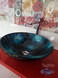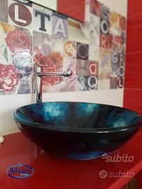 Lavabo in vetro temperato blu, diametro 42 cm Materiale: vetro temperato Finitura: lucida Dimensioni: 42x42x14,5h cm Spessore vetro: 1,5 cm Spedizione gratuita in tutta Italia. Isole escluse.