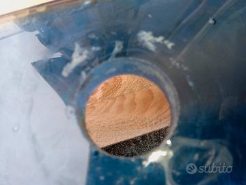 lavabo in vetro sospeso o per mobile come da foto, importante circa 30 chilogrammi molto bello , nell'ultima foto piccola scalfittura in un punto ,di mezzo centimetro liscia comunque al tatto, lunghezza 1,20m. - largh. lati stretti 38,5 cm - largh. ovale lavabo 55 cm, profondita' interna vasca ovale 15 cm.