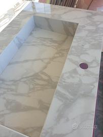 Lavabo in gres porcellanato. Piano con vasca integrata .