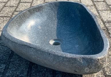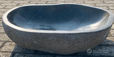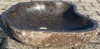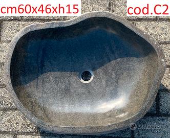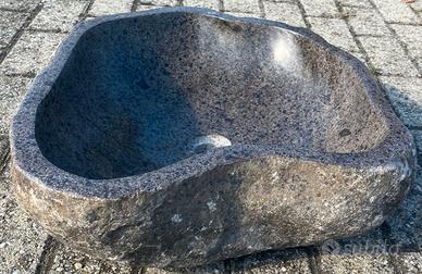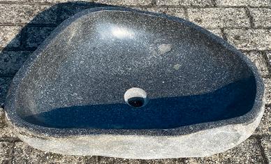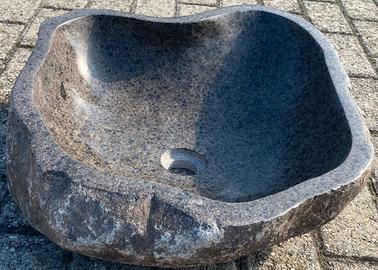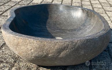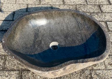 Lavabo lavandino da appoggio per bagno, scavato a mano da un sasso naturale di fiume.