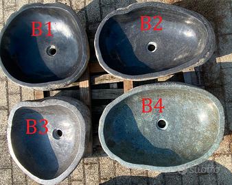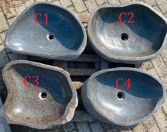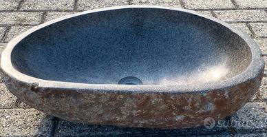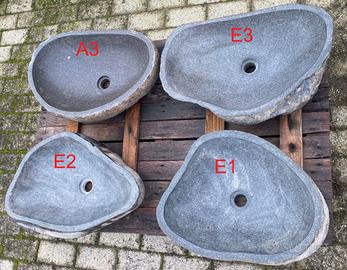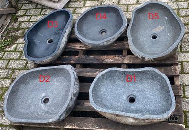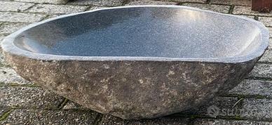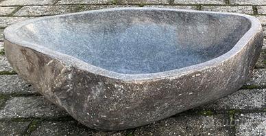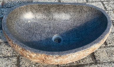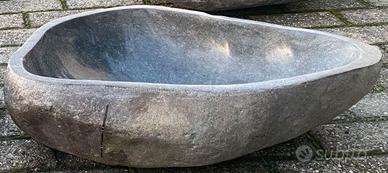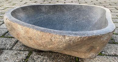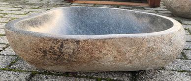 Lavabo lavandino da appoggio per bagno, scavato a mano da un sasso naturale di fiume.