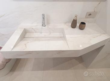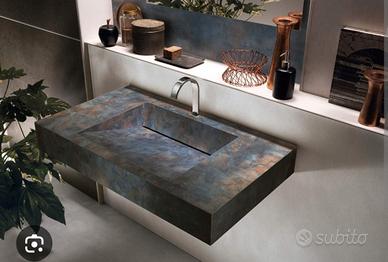realizzazione lavabo in gres porcellanato pezzi unici interamente realizzati a mano.