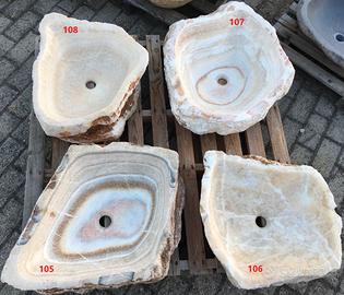 Lavabo lavandino in onice per bagno da appoggio, scavato da un blocco di onice naturale, ideale per bagno di lusso.