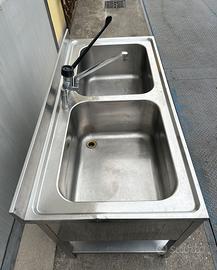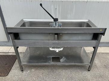 Lavabo - lavandino - lavapentole a 2 vasche in acciaio inox usato
