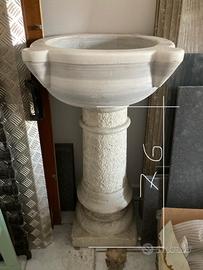 Vendo lavabo ricavato da una acquasantiera in marmo su colonna in cemento effetto pietra(due elementi componibili)