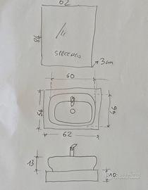 Benissimo lavabo in ceramica marchio Hidra da appoggio con miscelatore Grohe e sifone. Si vende insieme allo specchio grande 62x84cm. Misure complete nell’ultima foto (la mensola marrone su cui è appoggiato il lavabo non è disponibile). Disponibile a Treviso e per qualsiasi altra informazione chiamate 3405370029