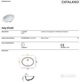 2 LAVABI NUOVI CATALANO MOD. SONN MIS. 57 BIANCO LUCIDO MAI INSTALLATI ANCORA NELLA SCATOLA ORIGINALE. COMPLETI DELLE GRAPPE DI FISSAGGIO. IL PREZZO INDICATO E' PER 1 LAVABO. PREZZO DEI DUE LAVABI EURO 100,00
