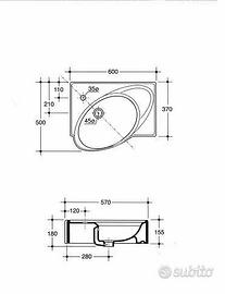 Lavabo Master Papillon bianco da appoggio/ sospeso. Prodotto da esposizione. Misure: 60x50 h. 15