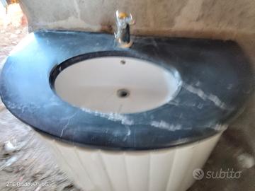lavandino /lavabo per bagno con top in marmo e relativo mobiletto stile anni 80 marca caribe , perfettamente funzionante.. rubinetto Frattini