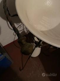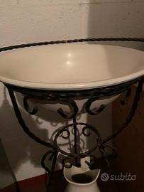Lavabo in ferro batturo con ceramiche conservato perfettamente per arredamento shabby chic