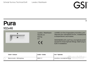 Lavabo sospeso design GSI 102 x 46
