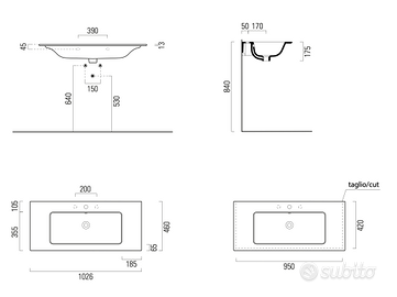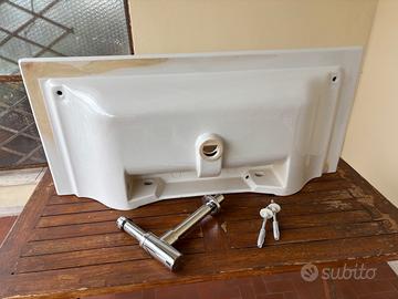 LAVABO con foro troppopieno monoforo, predisposto per rubinetteria tre fori. Installazione a sospensione o ad incasso. Completo di staffe di montaggio. Regalo anche sifone di scarico marca Jacuzzi.