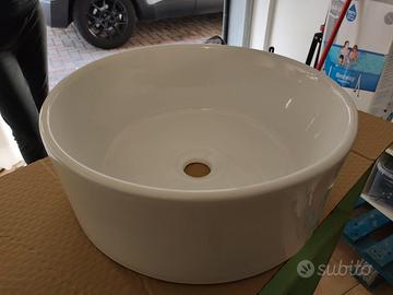 Vendo Lavabo da appoggio tondo in ceramica bianca lucida. Diametro 41 cm. Altezza 15,8 cm. Senza troppopieno. Assolutamente NUOVO, ancora imballato.
