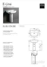 Lavabo con colonna Simas, porcellana bianca nuovo mai usato.
