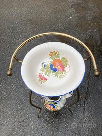 Vendo lavabo vintage da camera con struttura in ferro battuto. Piatto,piattino e brocca ‘Ceramiche d’abruzzo’. Ben tenuto.