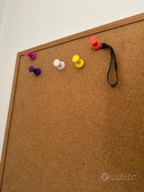 Lavagna di sughero con struttura in legno e spille colorate
