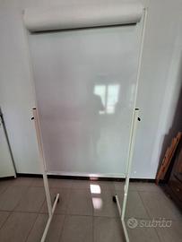 Lavagna magnetica cancellabile a secco dimensioni 75x120 con supporto per appendere blocco fogli carta (incluso blocco di ca.15 fogli nuovi). Struttura stabile in lega di alluminio, 4 ruote a 360°con freno di stazionamento. Altezza totale compreso il supporto ca.190 cm. Adatta per casa, didattica, aula, uffici, sala conferenze ecc. Solo consegna a mano con appuntamento concordato, non si spedisce