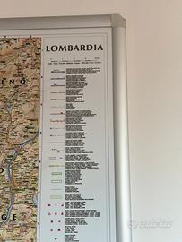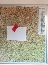 Lavagna magnetica con cornice in alluminio satinato, raffigurante una dettagliatissima cartografia della Lombardia (inclusa l’area metropolitana di Milano e le zone limitrofe). Un pezzo d'arredo funzionale ed elegante, perfetto per un ufficio, uno studio o per chi ama pianificare i propri viaggi nel Nord Italia. Caratteristiche principali: • Multifunzione: La superficie è scrivibile con appositi pennarelli cancellabili e permette l’applicazione di magneti per fissare appunti, foto o itinerari direttamente sulla mappa. • Accessori inclusi: Viene fornita completa di 1 cancellino magnetico e 4 magneti coordinati. • Qualità e Design: La cornice argentata conferisce un look moderno e professionale, adattandosi a ogni tipo di ambiente. • Dimensioni generose: 112 cm (larghezza) x 90 cm (altezza) x 1,5 cm (profondità). Condizioni: L'oggetto è in condizioni ottime. Non presenta alcun segno di usura, graffio o imperfezione sulla superficie. La cornice presenta dei piccoli graffi nella parte alta. Disponibile per il ritiro a mano a Milano. #Lombardia #Milano #Mappa #LavagnaMagnetica #ArredamentoUfficio #Cartografia #Planning #HomeOffice #Milan #InteriorDesign #MapLover