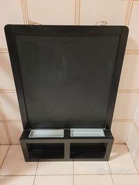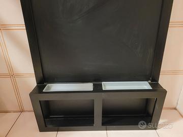 Lavagna nera da scrittura per gesso, marca Ikea modello Luns, utilizzata ma in ottime condizioni. La lavagna non presenta particolari segni di usura o difetti, e può essere appesa anche al muro grazie agli appositi ganci posteriori. E' dotata anche di due spazi frontali dove poter poggiare i gessi o altri materiali e ha anche uno spazio dove possono essere contenute chiavi, cellulari, posta o altro. Consegna a mano. No spedizione.