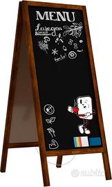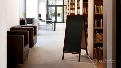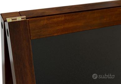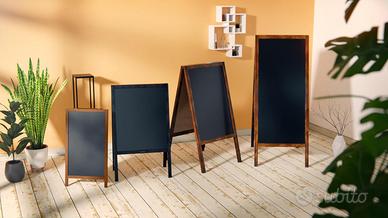 ALLboards Lavagna Nera da Gesso con Cavalletto 150x61cm, Struttura in Legno, Scrivibile con Gessetti e Pennarelli a Gesso, per Bar Ristoranti Locali CAMBI IL MESSAGGIO ESATTAMENTE QUANDO NE HAI BISOGNO – scrivi, cancelli e crei immediatamente nuovi contenuti sulla resistente superficie in HDF. LA TUA PUBBLICITÀ È VISIBILE DA OGNI LATO – la lavagna bifacciale espone i messaggi in modo che i clienti li notino indipendentemente dalla direzione da cui arrivano. FAI UNA PRIMA IMPRESSIONE PROFESSIONALE – l'elegante cornice in legno laccato attira l'attenzione e rafforza l'immagine del tuo brand. PROMUOVI LA TUA OFFERTA IN MODO PIÙ EFFICACE – il cavalletto pubblicitario è ideale per menu, promozioni, offerte del giorno e tutti i comunicati importanti. LO POSIZIONI DOVE FUNZIONA MEGLIO – la struttura maneggevole permette di spostarlo rapidamente nel punto di maggiore visibilità. LO USI ESATTAMENTE COME VUOI – perfetto ovunque contino visibilità e comunicazione rapida: nel locale, in negozio, in ufficio o a casa. STABILITÀ SU CUI PUOI CONTARE – la solida cornice e la catenella di sicurezza mantengono la lavagna saldamente in posizione. DURATA NEGLI ANNI – il pannello in HDF resistente ai graffi e la robusta cornice in legno mantengono un aspetto estetico anche con un uso intensivo. La superficie non è impermeabile.