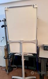 Lavagna porta Blocco carta - struttura in metallo bianco con porta penne e base con ruote che ne facilita lo spostamento Alta 187 larga 70