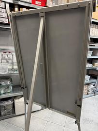 Lavagna portablocco 70 x 100 cm con viti di fissaggio per regolare l'altezza, fino ad un massimo di 187 cm. Superficie magnetica scrivibile e cancellabile a secco.
