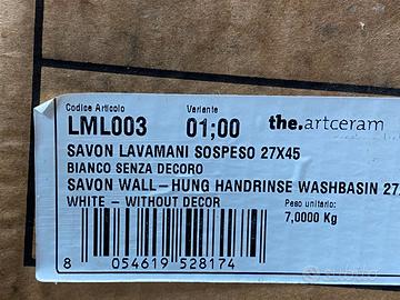 Per errato acquisto Vendo lavamani in ceramica, Savon Artceram LML003 Dimensioni 27x45 Sospeso Finitura Bianca Disponibile 48 pz, vendita in blocco Prezzo pagato 150 €