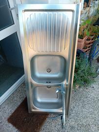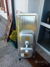 4) lavandino in acciaio con rubinetto Cornat, dimensioni:50x120 150€;