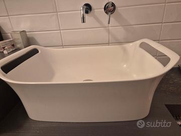 Lavandino a ciotola Dimensioni: 62 x 41 cm Altezza esterna 19 cm, profondità interna 12 cm Unico difetto crepa su un manico ( in foto)