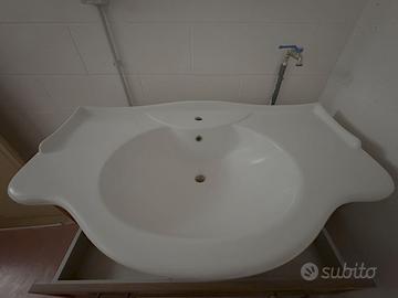 Mobile arredo bagno in arte povera con lavandino in ceramica da 114 cm. Base noce. Lavandino in ottime condizioni. In caso di spedizione questa sarà a carico dell'acquirente.