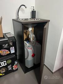 Il lavello autonomo Express Water in finitura Wenghè è un dispositivo 100% Made in Italy, realizzato in legno nobilitato e completamente indipendente dalla rete idrica ed elettrica. Rappresenta la soluzione ideale per evitare costose opere murarie, garantendo igiene ovunque sia necessario. Grazie al design compatto e al ridotto ingombro, è perfetto per centri estetici, studi tattoo, pizzerie e strutture ospedaliere, assicurando un'installazione rapida anche in spazi limitati.