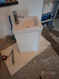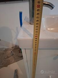 Descrizione: Vendo lavandino in ceramica bianca completo di mobile bagno. Design moderno, ideale per bagni piccoli o di servizio.Dimensioni lavandino: circa 40–42 cm larghezza, 30–32 cm profondità Altezza totale con mobile: circa 80 cm Rubinetto cromato incluso Piletta con tappo e foro troppo pieno Mobile bianco coordinato Condizioni: Buono stato generale, presenta solo normali segni di utilizzo. Necessita di una semplice pulizia.