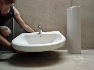 Lavandino per bagno Ideal Standard Connect bianco con rubinetteria color argento compreso di colonna. Misure: -altezza 86 cm -lunghezza 55 cm -larghezza 65 cm