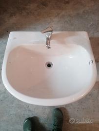 lavandino bagno ceramica,con colonna, completo di miscelatore.