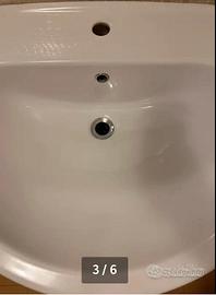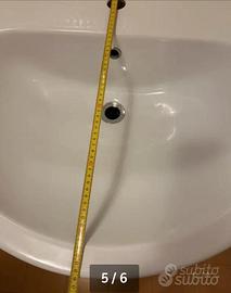 Lavandino bagno marca Olympia con sifone e piletta. Misure: largo 65, profondo 55.