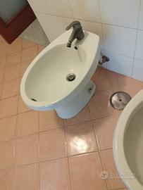 lavandino con colonna + Bidè completi di miscelatore perfettamente funzionante