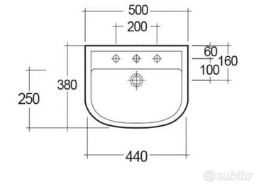 Lavandino Ceramica Bianca da interno/esterno misure 50x38 cm completo di viti per l'ancoraggio al muro, ritiro da parte dell' acquirente