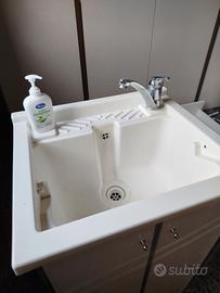 Mobiletto Bagno Bianco SEMINUOVO con profilo in alluminio, compreso di Lavandino molto Capiente perfetto da lavanderia o secondo bagno e completo di Rubinetto