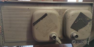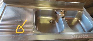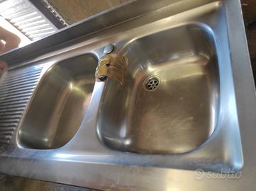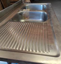 acciaio inox doppia vaschetta e gocciolatoio 1.20 x 60. Usato, ma in buonissimo stato, presenta solo 3 piccoli graffi come indicato in foto dalla freccia gialla. No perditempo, post presente in altri gruppi. Ritiro a carico dell'acquirente, no spedizione.