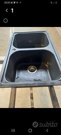 Lavandino nero in fragranite nero ad incasso formato da 2 vasche, dimensioni cm.80 profondita' cm.50
