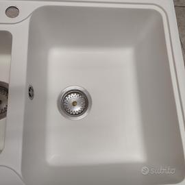 Lavello in composito bianco/Lavello da incasso a 1,5 vasche da 100 x 50 cm/Lavello adatto a basi da 60 cm di larghezza