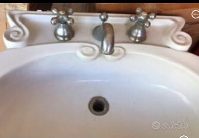 Lavandino in ceramica bianca anni 1920/1930, autentico, in perfetto stato. Anche la rubinetteria e’ dell’epoca.