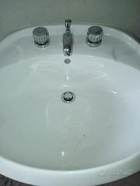 lavandino da bagno in porcellana bianco con rubinetti, misure larghezza 65 cm , profondo 57 cm altezza 85
