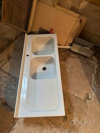 Marca DOLOMITE. Pratico e comodo lavandino a dopoia pila con piano di scolo acqua laterale condizioni discrete. Domensioni 120 cm x 50cm x 20 cm. Cinsegna a mano