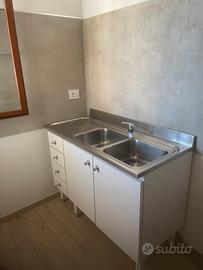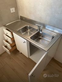 Lavandino doppia vasca marca Franke in ottime condizioni,comodo per la doppia vasca gocciolatoio tutto rivestito in acciaio il ripiano superiore,legno e cerniere in ottimo stato robusto.