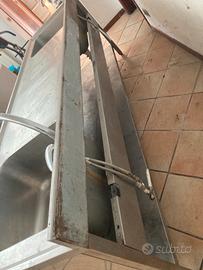 Lavandino doppio professionale in acciaio inox con rubinetti , di cui uno con comando a pedale Dimensioni 240x70 cm alto 85
