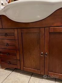 Lavandino in legno in ottime condizioni dotato di specchio, lampada luce e mobile sottostante