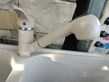 lavandino fragranite doppia vasca con miscelatore a doccetta allungabile. cm 87 x 51 profonda 20 . prezzo trattabile incluso raccordi .