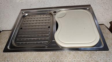 Lavandino in acciaio inox marca Franke da incasso usato ma ben tenuto. misure 790 x 500 , con pilette di scarico, tappi in acciaio. Inoltre compresi nel prezzo due accessori che da soli valgono il prezzo, colatoio in acciaio inox e tagliere in plastica. Totale Valore della merce nuova circa 300 euro.