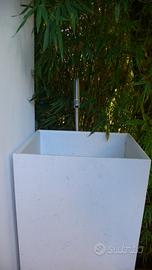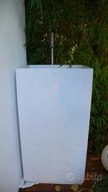 Lavandino ARCOM CUBO freestanding in marmo bianco con sfumature grigie (molto leggere), mai montato, mai utilizzato, adatto sia da interno che esterno.